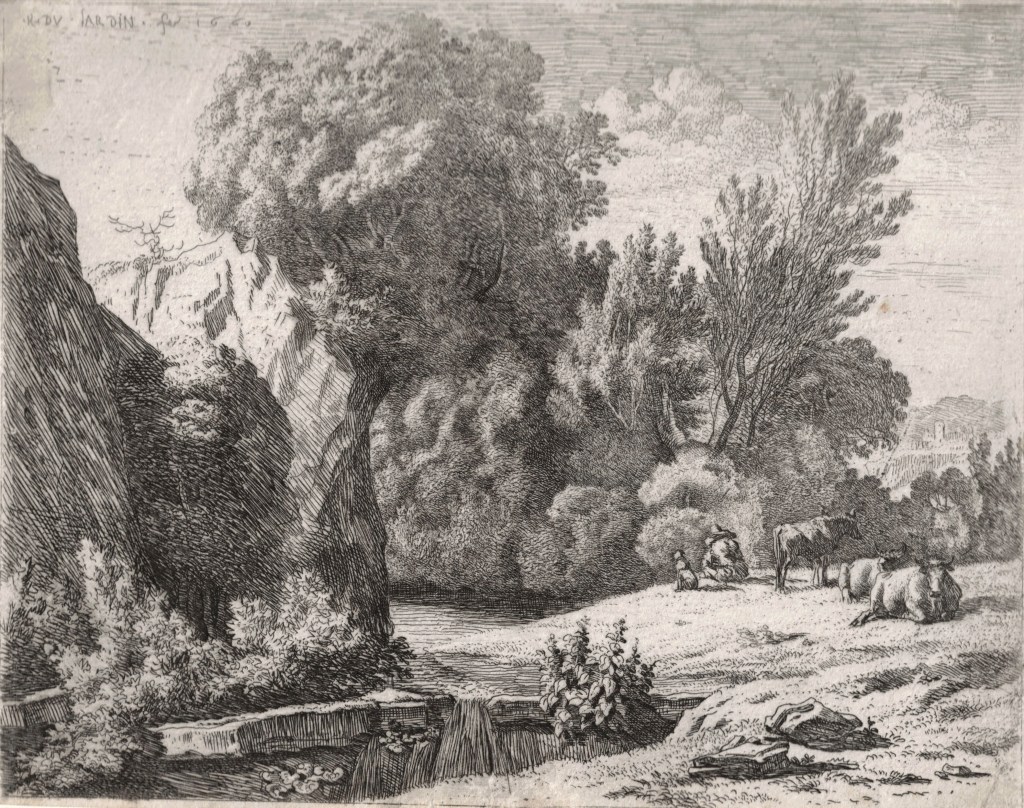 Gaspard Dughet (1615-1675) Paysages (d’Italie) de forme ronde no. 4, c. 1638-1640 (Bartsch 4 i/ii) ***Claude Gellée (Le Lorrain) (1600-1682) Le Chevrier, 1663 (Mannocci 44 iii a/v)Claude Gellée (Le Lorrain) (1600-1682) Le Départ pour les champs, c. 1638-1640 (Mannocci 34 iiic/iv) Collection de William Esdaile (1758-1837) ***Claude Gellée (Le Lorrain) (1600-1682) Scène de brigands, 1633 (Mannocci 11 v a/viii) Superbe impression du vivant de l’artiste ****Paul Cézanne (1839-1906) Entrée de ferme, Rue Rémy (Auvers), 1873Bartholomeus Breenbergh (1598-1657) Vue de la Via Flaminia dans les environs de Rome, 1640 (Holl. Dutch 17 seul état) ***Pieter van Laer (Il Bamboccio) (1599-1642) Paysage avec deux arbres (Hollstein Dutch 18 i/ii) ***Jan Both (1618-1652) Le Grand arbre, c. 1640 (Hollstein Dutch 3 iii/vi Superbe impression du vivant de l’artiste ***Jan Both (1618-1652) Les deux mulets, c. 1640 (Hollstein Dutch 4 iii/vi) ***Jean-Baptiste-Camille Corot (1796-1875) Souvenir d’Italie, 1865 (Delteil 5 ii/iv)Jan Both (1618-1652) La Femme sur le mulet, 1640 (New Hollstein 1 ii/vi) Superbe impression du vivant de l’artiste, avant l’adresse de Matham ***Giovanni Battista Fontana (1527-1587) Saint Jean le Baptiste prêchant, 1558-1580 ****Jan Ruijscher (1625-1675) L’écluse, 1640-1670 (Holl. Dutch 11 ii/ii)Jean-François Raffaelli (1850-1924) Le Terrain vague (Delteil 16, i/ii) Avant l’ajout d’un arbre à l’horizon à droite ****Herman Naiwincx (1623-1651) Paysage, c. 1650 (Hollstein 5 iii/iii) ***Adriaen Verboom (1627-1673) La Pièce d’eau, c. 1640-50 (Bartsch 2 ii/ii) ***Lucas van Uden (1595-1672) Paysage avec des hommes poussant un chariot dételé, c. 1660 (Hollstein Dutch 41 i/iii) Avant les retouches au burin par van Uden ****Pieter van Laer (Il Bamboccio) (1599-1642) Paysage avec deux arbres (Hollstein Dutch 18 i/ii) ***Adriaen Verboom (1627-1673) Le Hameau, c. 1640-50 (Bartsch 1 ii/ii) ***Jacob Savery IClaude Gellée (Le Lorrain) (1600-1682) La Danse villageoise, 1637 (Mannocci 20 ii/iv) ***Claude Gellée (Le Lorrain) (1600-1682) L’apparition, c. 1630 (Mannocci 5 iii/v)Carel Dujardin (1626-1678) Paysage avec un paysan et trois vaches, 1660 (Hollstein Dutch 22 i/ii) Délicate impression du vivant de l’artiste ***Paysages et genre nordiques XVIIGiovanni Battista Castiglione (Il Grechetto) (1609-1664) Scène pastorale, 1630-1640 (Bellini & d’Amato V) Superbe impression du vivant de l’artiste ***Paul Ferdinand Gachet (1828-1909) Paysage de neige avec des maisons, c. 1890 ****Hans Baldung Grien (1484-1545) Groupe de sept chevaux, 1534 (Bartsch II.140.238) ****Henri Mauperché (1602-1686) L’Ange se découvre à Tobie, 1625 (Robert-Dumesnil 7 i/ii) ***Bartholomeus Breenbergh (1598-1657) La Nymphe Corsica et des satyres assis dans un paysage, 1640 (H. Dutch 20 seul état) *****Lucas de Leyde (1494-1533) La Résurrection de Lazare, c. 1507 (Bartsch 42) L’une des toutes premières gravure de Lucas ***Lucas de Leyde (1494-1533) Repos pendant la fuite en Égypte, c. 1508 (Bartsch 85) ****Marcantonio Raimondi (c. 1480-1534) Vulcain, Vénus et Cupidon, c. 1505 (Shoemaker 4) ****Edward Munch (1863-1944) Paysage du nord, 1908 (Woll 268 iii/iii)Jan van de Velde « le jeune » (1593-1641) Vue d’un village entouré de prairies (Amoenissimae aliquot Regiunculae), 1615 (Hollstein 188, i/ii) Superbe impression du premier état ***Moyses van Wtenbrouck (1600-1646) Mercure et Argos, c. 1620 (Hollstein Dutch 35 iii/iii)Paul Ferdinand Gachet (1828-1909) Paysage de neige avec des maisons en arrière plan, c. 1890 ***Jean-Baptiste-Camille Corot (1796-1875) L’Étang de Ville d’Avray, 1862 (Delteil 3)Adriaen van Ostade (1610-1685) Le Charlatan, 1648 (Hollstein Dutch 43 ii/ix) Avant l’ajout par Ostade des trois enfants à gauche ****Pieter Lasman (ou J. van Noordt d’après Lastman) (1583-1633) Juda et Tamar, c. 1615 (Hollstein Dutch 1, i-ii/ii) ****