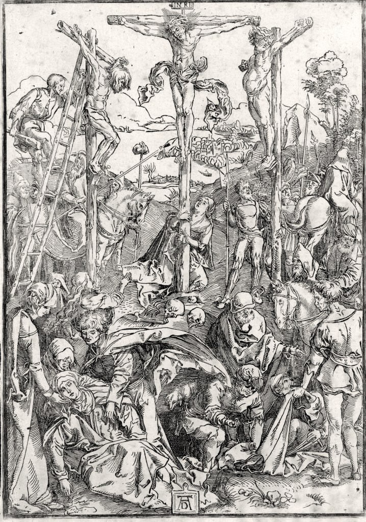 Whereas Dürer used woodcut for the original, this copy is an etching. This shows the extent to which Dürer’s iconography cannot be reduced to a particular technique but easily translates from a technique to another.