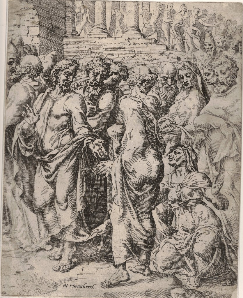 Au moment où il réalise cette gravure (1548), Coornhert débute à peine dans les arts graphiques (il commence en 1547). Sa collaboration avec Heemskerk à Haarlem durera jusqu’en 1559. L’association qu’il maintient avec Heemskerk pendant cette période contribuera à la diffusion du maniérisme international par l’estampe qu’Heemskerk avait contribué à importer d’Italie où il avait séjourné entre 1532 et 1537.
