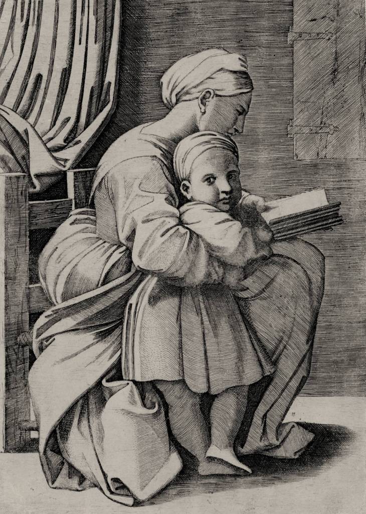 « Cette estampe, qui n’a point de marque, est gravée d’après un dessein de Raphaël. Heineke soutient que la gravure est de Marc-Antoine, Mariette croit qu’elle est plutôt de Marc de Ravenne [Marco Dente]. Nous ne sommes pas du tout d’accord avec l’opinion du premier, mais nous n’oserions pas non plus soutenir celle du second, quoiqu’elle nous paraisse plus fondée »