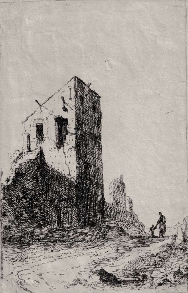 De la série des Ruines romaines (Romeinse Ruïnes: Verscheijden Vervallen gebouwe soo binnen als buyten Romen), excellente impression d’un tirage contemporain, restaurations, sans filigrane, coupée à l’intérieur de la marque de la cuvette.