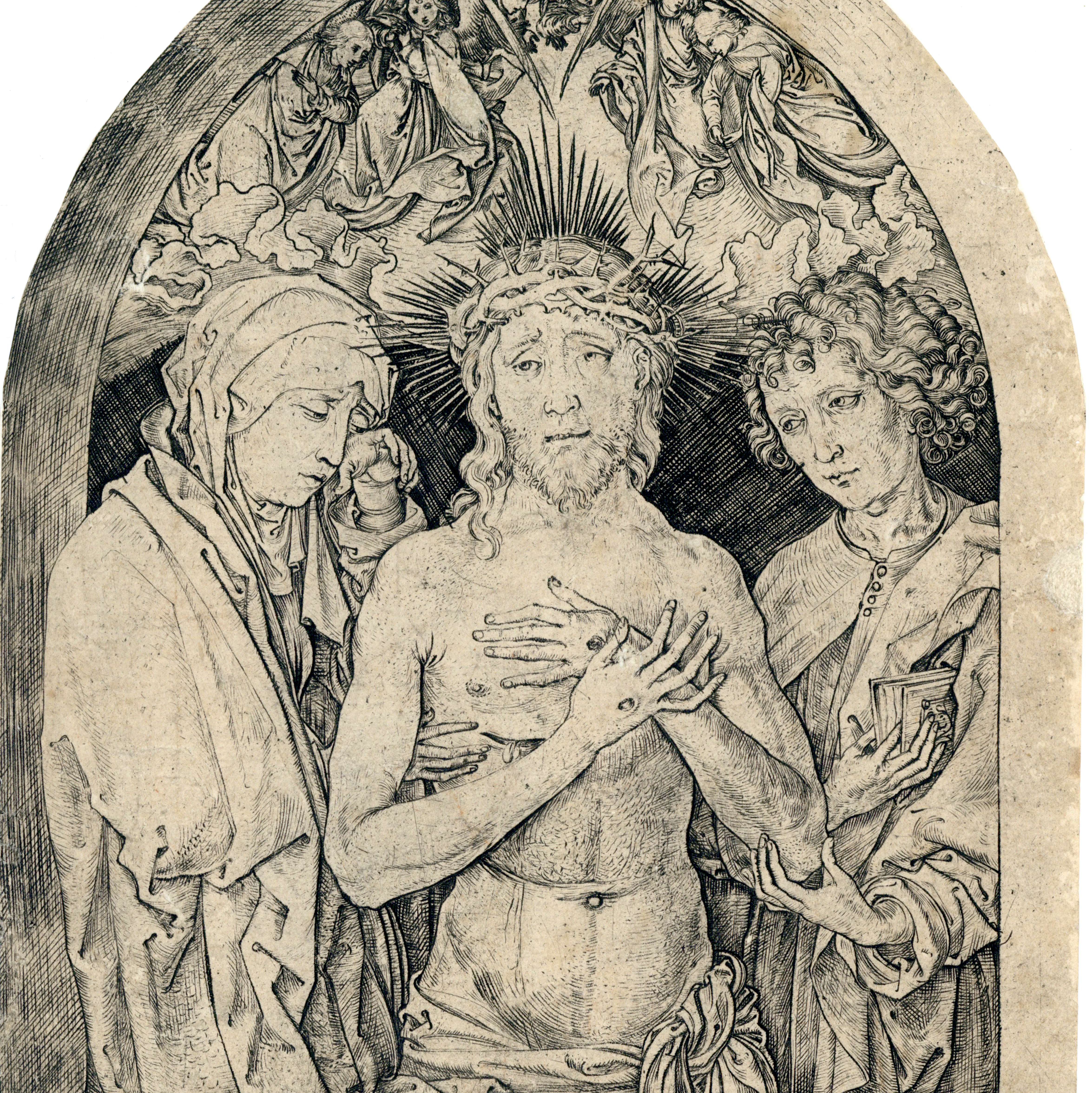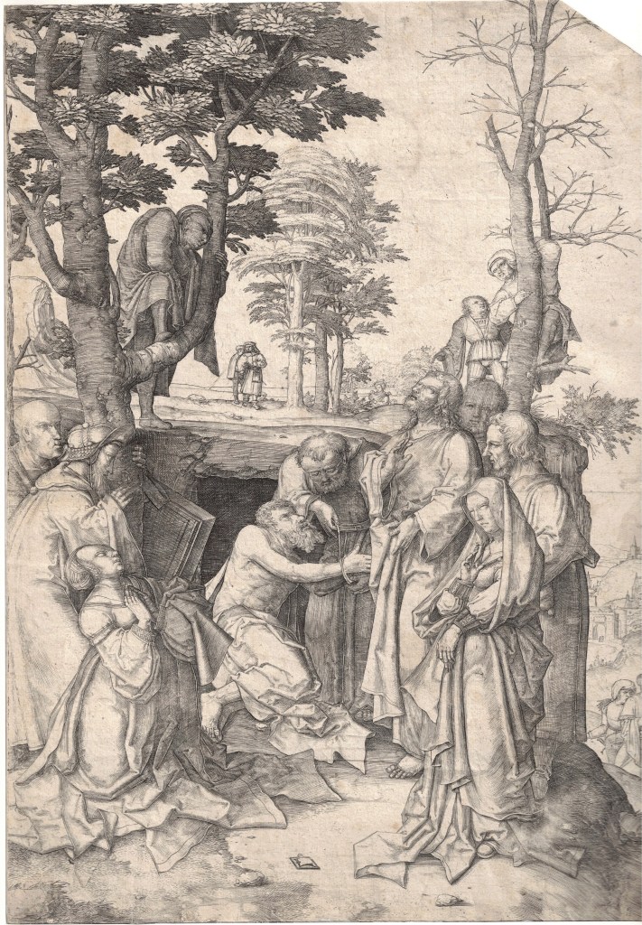 Martin Schongauer (c. 1445-1491) L’Arrestation du Christ, c. 1480 (Bartsch 10) Filigrane P gothique ****Georg PeGeorg Peham (1568-1604) Quos Ego, 1594 ***ham Quos Ego, 1594Georg Pencz (1500-1550) Le Bon Samaritain, 1543 (Hollstein 36 i/ii) Lucas de Leyde (1494-1533) Lamech et Caïn, 1524 (New Holl. 14 a)Lucas de Leyde (1494-1533) Saint Jérôme dans son étude, 1521 (Bartsch 114)Lucas de Leyde (1494-1533) La Résurrection de Lazare, c. 1507 (Bartsch 42) L’une des toutes premières gravure de Lucas ***Lucas de Leyde (1494-1533) Repos pendant la fuite en Égypte, c. 1508 (Bartsch 85) ****Hans Baldung Grien (1484-1545) Groupe de sept chevaux, 1534 (Bartsch II.140.238) ****Albrecht Altdorfer (1480-1538) Le Joueur de violon, c. 1520 (Bartsch VIII.60.54) *****Lucas de Leyde (1494-1533) La Laitière, 1510 (New Hollstein 158 b)Hans Bol (1534-1593) Les patineurs, 1549-1572 (Hollstein Dutch 22) ****Jacob Savery I (1575-1603) Paysage avec voyageurs sur un rocher escarpé, c. 1585 (Hollstein Dutch 8 i/v) Rarissime premier état *****Albrecht Altdorfer (1480-1538) Le Christ au Mont des Oliviers, 1513 (Planche de la suite de « L’Histoire de la chute et de la rédemption de l’homme”)Cornelis Massijs (1510-1562) Abraham reçoit les anges, 1545 (Hollstein 1) ****Sebald Beham (1500-1550) Le Fils prodigue guardant les pourceaux, 1538 (Bartsch VIII.132.35)Raphael Sadeler (d’après Jos van Winghe) (1561-1632) Nativité, 1570-1632 (Hollstein 13)Dirk Coornhert (d’après Heemskerck) (1522-1590) Jésus et la femme samaritaine au puit, 1548 (New Hollstein 280) ***Dirk Coornhert (d’après Heemskerck) (1522-1590) Jésus et la femme avec des problèmes de saignement, 1548 (New Hollstein 279) ***Heinrich Aldegrever (1502-1562) Marcus Curtius, 1532 (New Hollstein 68)Lucas de Leyde (1494-1533) Mahomet et le moine Sergius, 1508 (New Holl. 126 a/c) Superbe impression probablement réalisée par l’artiste ****Martin Schongauer (1445-1491) Le Christ de douleur entouré de la Vierge et de Saint Jean, 1469-1482 (Holl. 34 ii) Une de ses toutes premières gravures *****